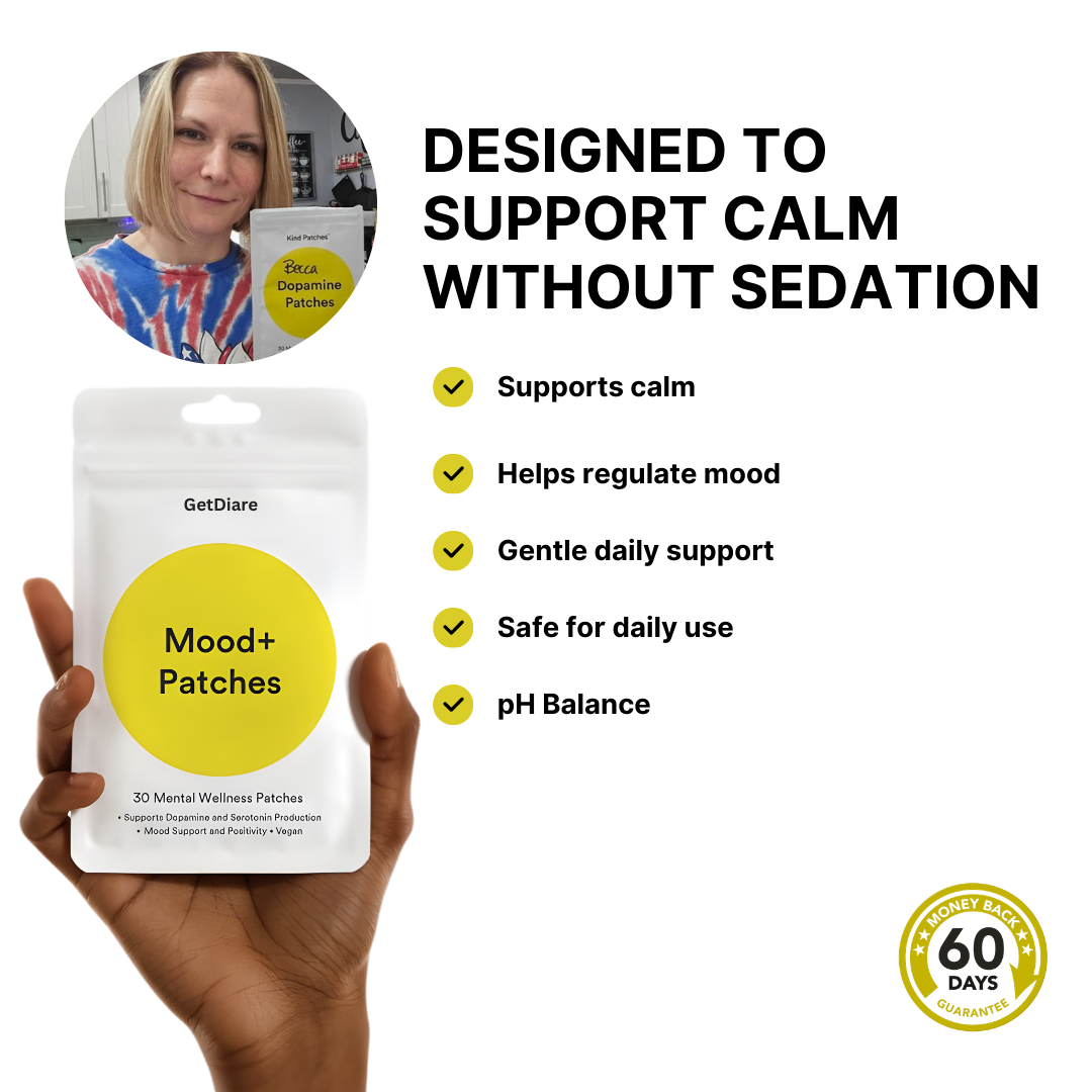 These mood patches provide gentle, all-day support for calm and balance without making you feel sleepy or numb. The slow-release patch works quietly in the background to help reduce stress, ease overwhelm, and support emotional regulation — with no pills, no stimulants, and no crash. Just simple, effortless support for your nervous system when you need it most.